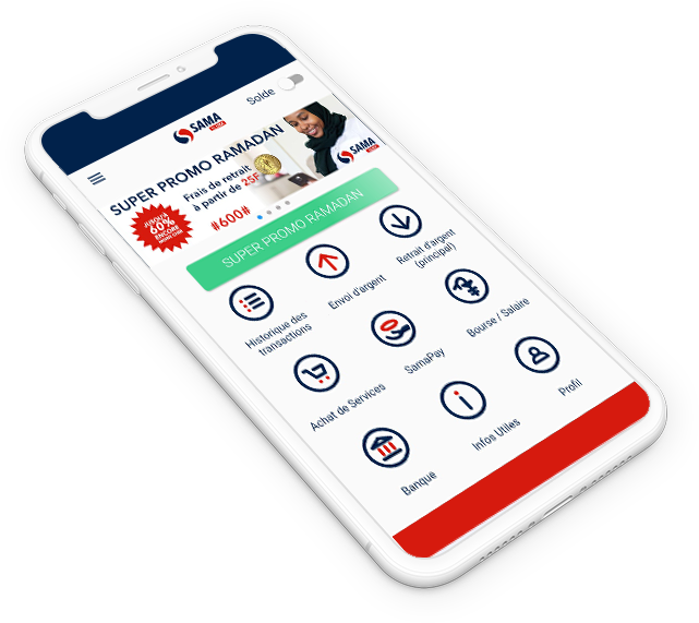SAMA Money est une plateforme innovante de transfert d’argent et de paiement mobile. Il vous suffit de créer un compte SAMA pour pouvoir envoyer et recevoir de l’argent partout au Mali