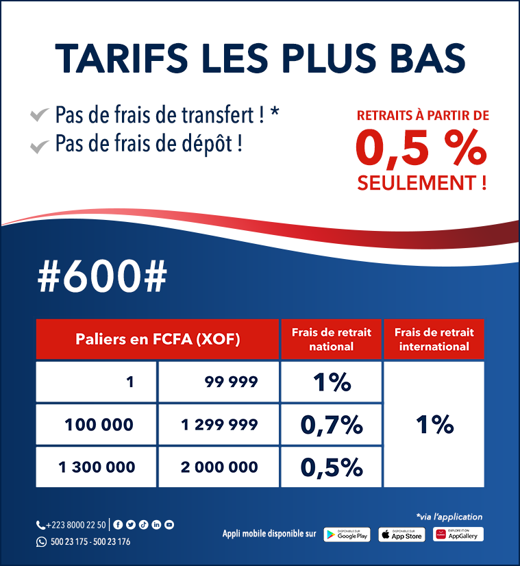 SAMA Money applique les frais de retraits les plus bas du marché sur une grille simple et transparente.